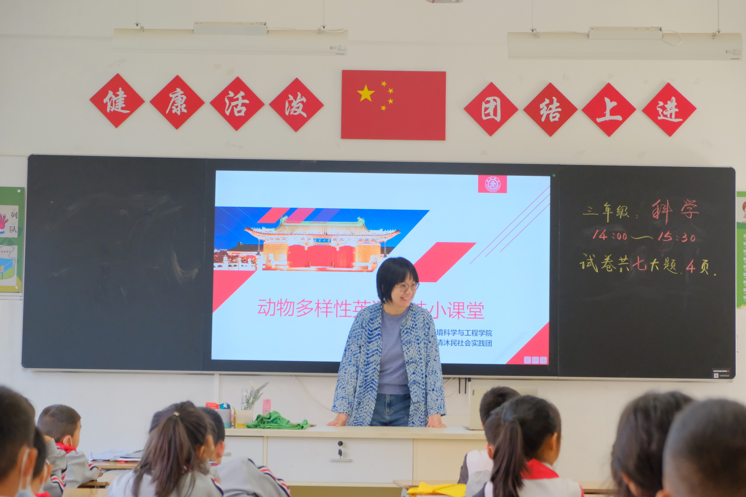 下午的户外活动课堂为深化同学们对保护生物多样性的理解,实践团成员章瑶为同学们讲授了生态系统的组成及维持生态系统平衡对生物多样性的重要性,分组游戏和童话小剧场使同学们感受奇妙的生态系统的同时了解到保护生物多样性的必要。