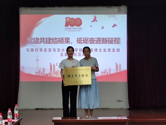 在结对共建座谈会上,大家共同回顾了环境学院与马路村党建共建结硕果的总结视频。庄行镇党委副书记朱静英对上海交大环境学院博士生实践团队表示了热烈欢迎,并对以马路村作为科研实践基地和双方的进一步合作表示了充分肯定。为进一步加强沟通交流,发挥校地协作优势,环境学院在马路村成立“博士生工作站”“院长工作站”和“党员示范基地”并现场授牌。