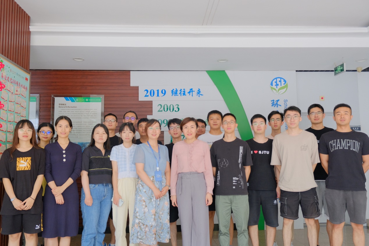 全体同学热烈欢送即将奔赴杭州市钱塘区生态环境局的毕业生党支部书记谭宇佳,张洋代表学院送上交大定制版礼物。