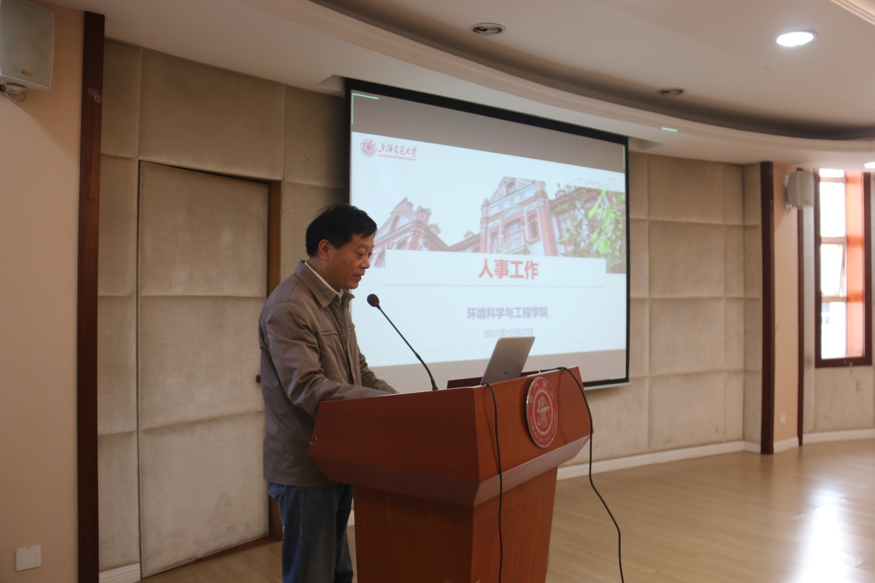 10月27日下午,环境学院2021年第三次全院教职工大会在学院报告厅举行,学院党政领导班子、全体教职工参会,会议由党委书记胡薇薇主持。
