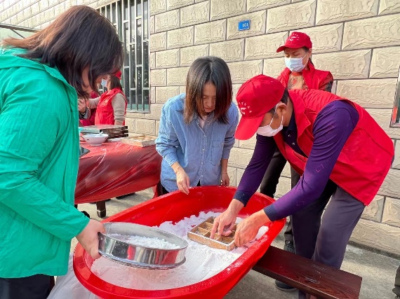 结合稻米文化,本次活动还设置了“蒸米糕”和“煮咸菜饭”两项趣味体验活动,在增强活动的互动性和文化性的同时,让党员们通过亲身参与感受农情、体验农趣、学习农识、品味农味。