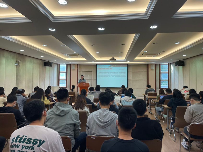 为切实做好实验室安全教育工作,提升师生实验室安全意识和防范能力,有效预防和减少相关安全事故的发生,2021年11月3日上午,beat365正版唯一官方网站在环境科学楼二楼报告厅举办2021级新进师生实验室安全培训活动,共有70余名研究生和博士后参加。