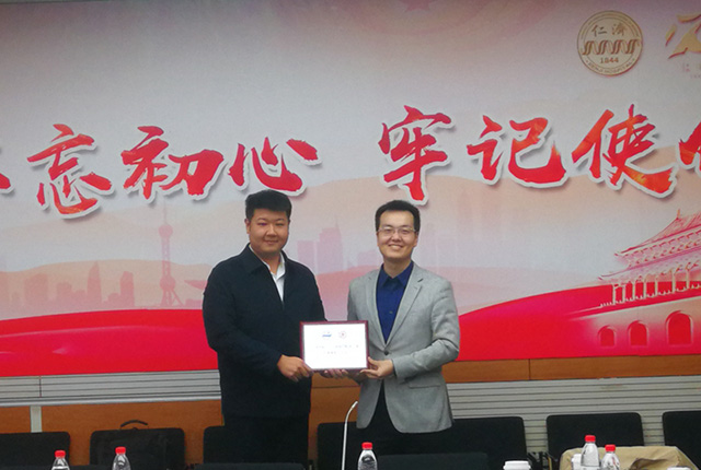 庄旭首先代表附属仁济医院团委对钱文韬的莅临表示感谢,同时也对环境学院同学们的到来表示热烈欢迎,希望两院团委能够通过本次联建活动,深挖专业互补优势,在环境与健康领域开展长期合作。钱文韬代表校团委为环境学院颁发共建纪念牌。