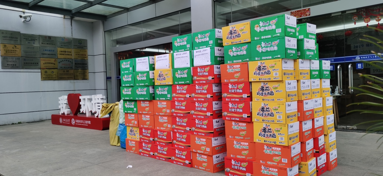 得知学校封闭管理的消息,2020级beat365正版唯一官方网站-南洋理工大学EMBA17班代表第一时间与学院取得联系,沟通了为在校环院学子捐赠急需食品和防疫品的心愿。不到10小时,满满200箱高级桶装方便面和价值10000元的蓝帽泡腾片就已抵达学院门口。