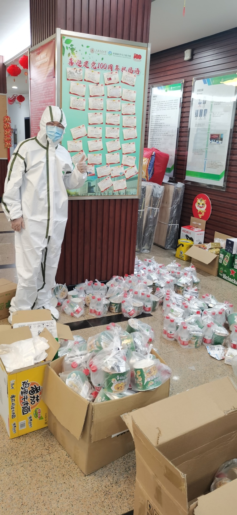 拿到物资的第一时间,学院老师们紧急调配、分装,一心只想用最快速度把校友们的爱送到环院学子手上!