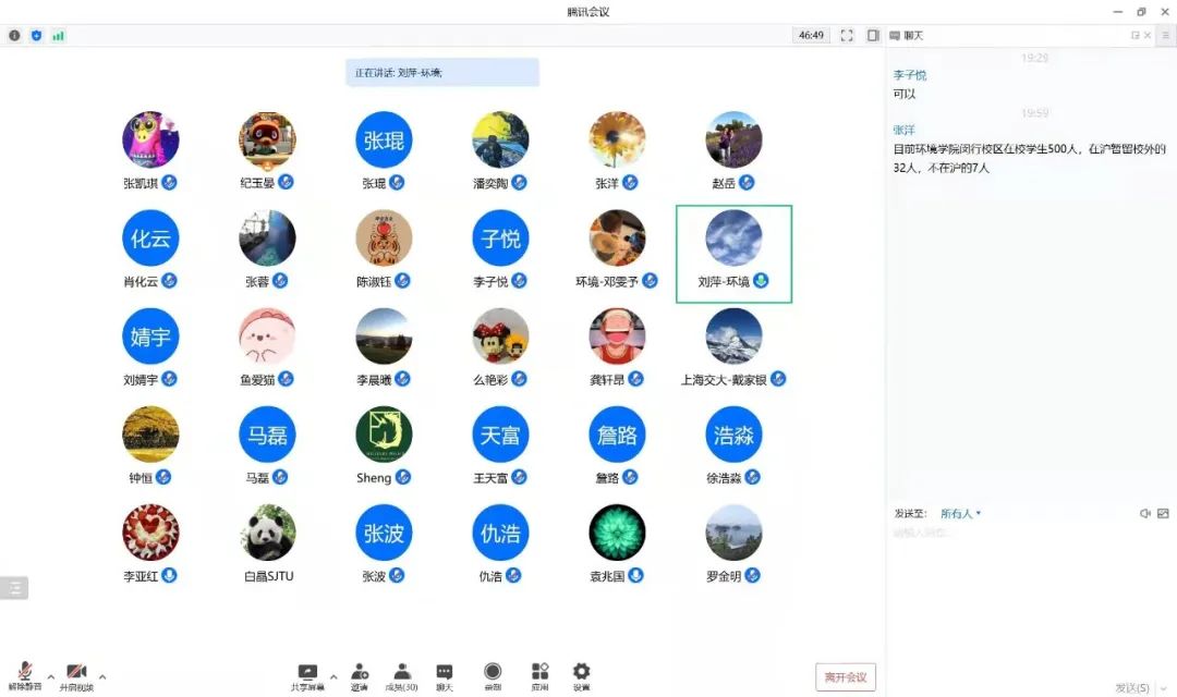 交大闵行校区闭环管理之后,环境学院党委在第一时间成立疫情防控工作领导小组,由学院党委副书记张洋、思政教师于爱涛和四名辅导员及全体班主任组成校内学生管理组。召开专题班会,全面摸排和掌握校内外学生情况,实行“一人一册”精准管理,形成“信息多推送、联系全覆盖、关爱全天候、健康每天报”的工作格局。按照“停课不停学不停教”的要求,会同学院教务办开展在线教学工作,确保学生健康学业两不误。