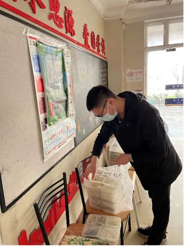党员张凯琪主动报名参加校园管理志愿者,负责所在楼层的物资餐食分发、垃圾清运、核酸检测带队工作。他还主动关心楼栋阿姨,及时帮助阿姨解决生活困难。