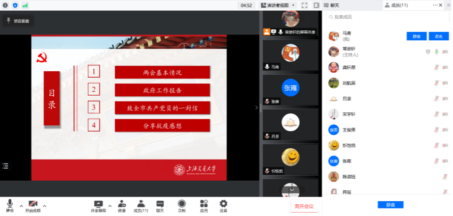 活动中支部同学还围绕上海市委组织部《在大战大考中彰显特殊责任、特殊担当——致全市共产党员的一封信》积极开展讨论,分享自己作为学生志愿者在参与学校疫情防控工作中的感悟。