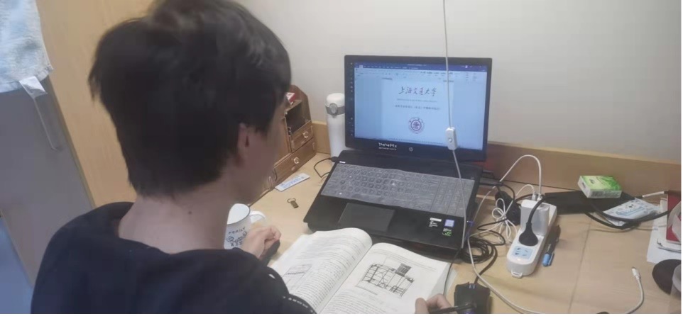 吕坚在宿舍做毕业设计