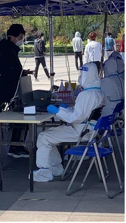 龚轩昂(左一)协助校内核酸采样工作照