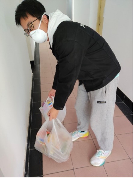 陈淑钰在楼栋中负责清运垃圾、配送物资、统计配餐需求的工作。她表示,每当看到逆行回校的老师和校友源源不断的捐赠,都感到“饮水思源,爱国荣校”的校训已深深烙印在每个交大人的心中。“作为一名党员,我们更应该亮出身份,贡献自己的一份力量。”