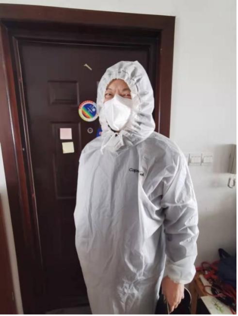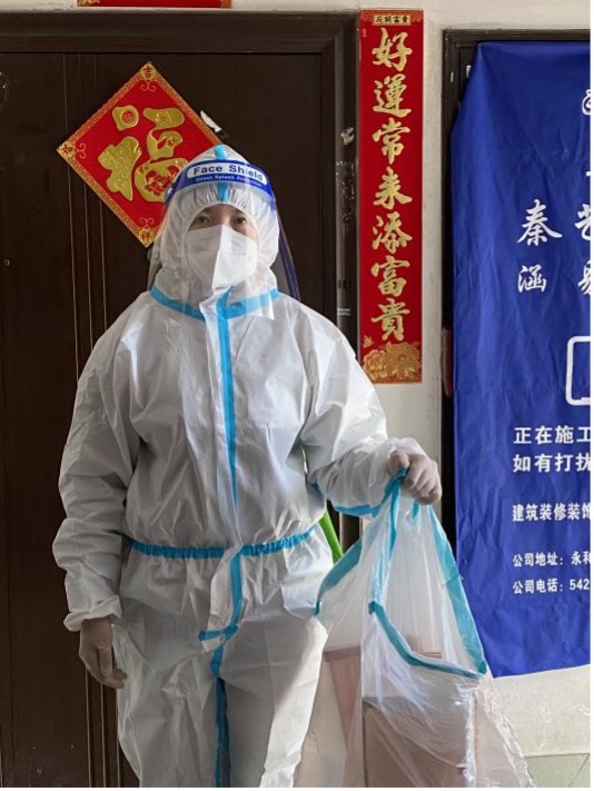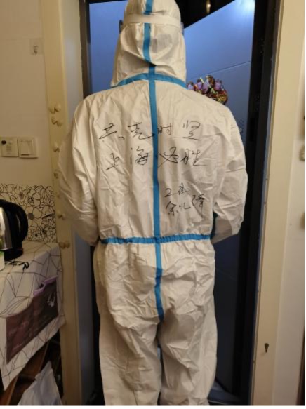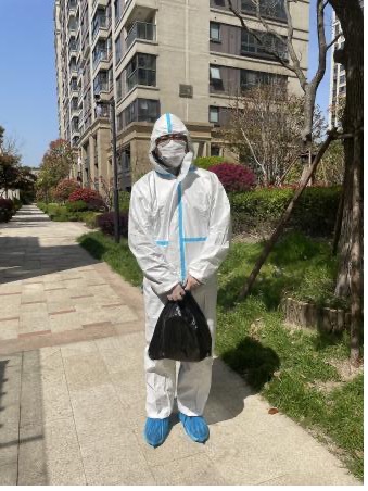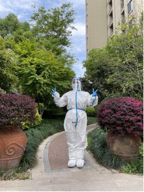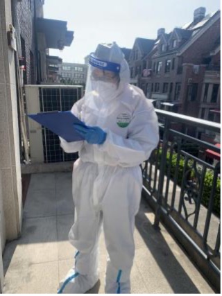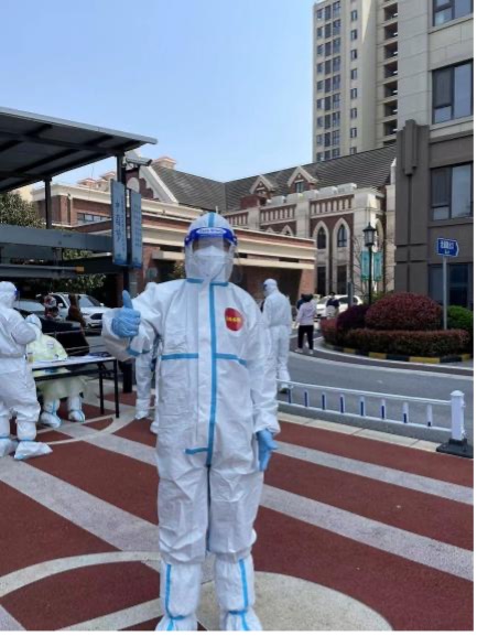 党员何小娟的爱人逆行支援交大,家中还有一老两小需要照顾。由于所在楼栋存在密接,她主动与居委沟通,协助做好居民安抚工作,积极传播正能量。空余时间还帮助发放政府物资、抗原检测盒,组织本楼栋居民有序排队检测核酸。她说:“每一位‘大白’都因心中有爱所以无畏无惧。这份爱在穿上防护服的那一刻就感受特别强烈,因为脚下的土地,就是我们要守护的家园。上海,加油!”