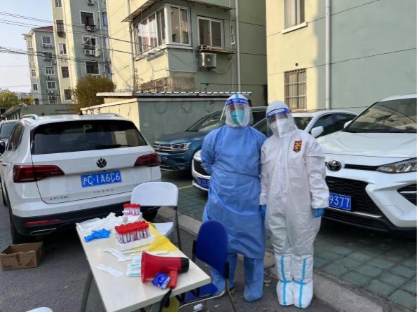 支部委员包晨静主动参与本楼栋抗原检测志愿工作。她说:“我所在的小区第一时间成立了临时党支部,来自各行各业、不同年龄段的党员同志们迅速集结,大家饱满的热情、高效的执行力令我备受鼓舞,身边每一位党员志愿者的无私付出,都是一堂生动的党课。”