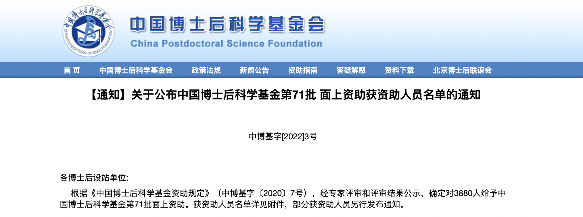 近日,中国博士后科学基金会公示中国博士后科学基金第71批面上资助获资助人员名单,我院谭雪萍、王耀、石彦彪、蒋小峰、张满平博士后入选该名单。